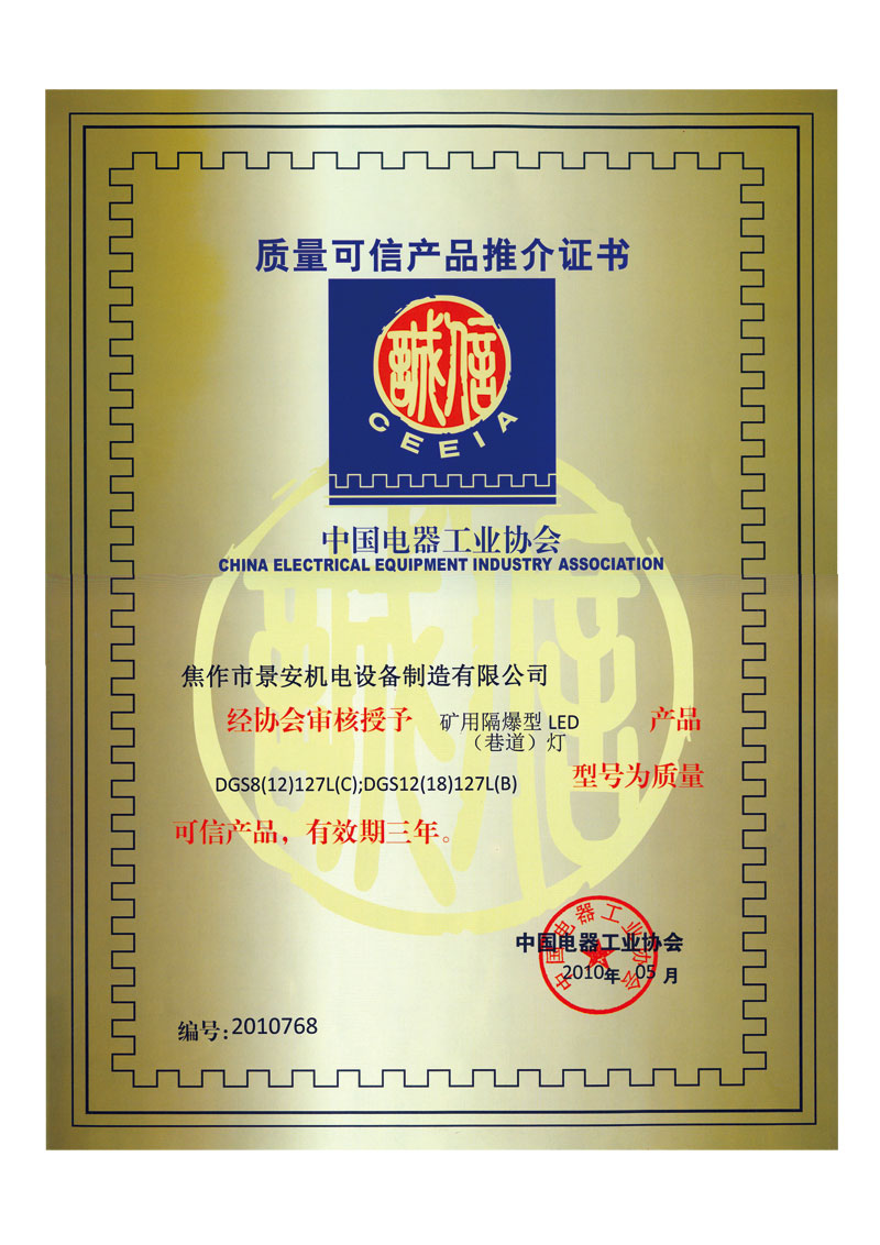 推介證書(shū)-LED燈